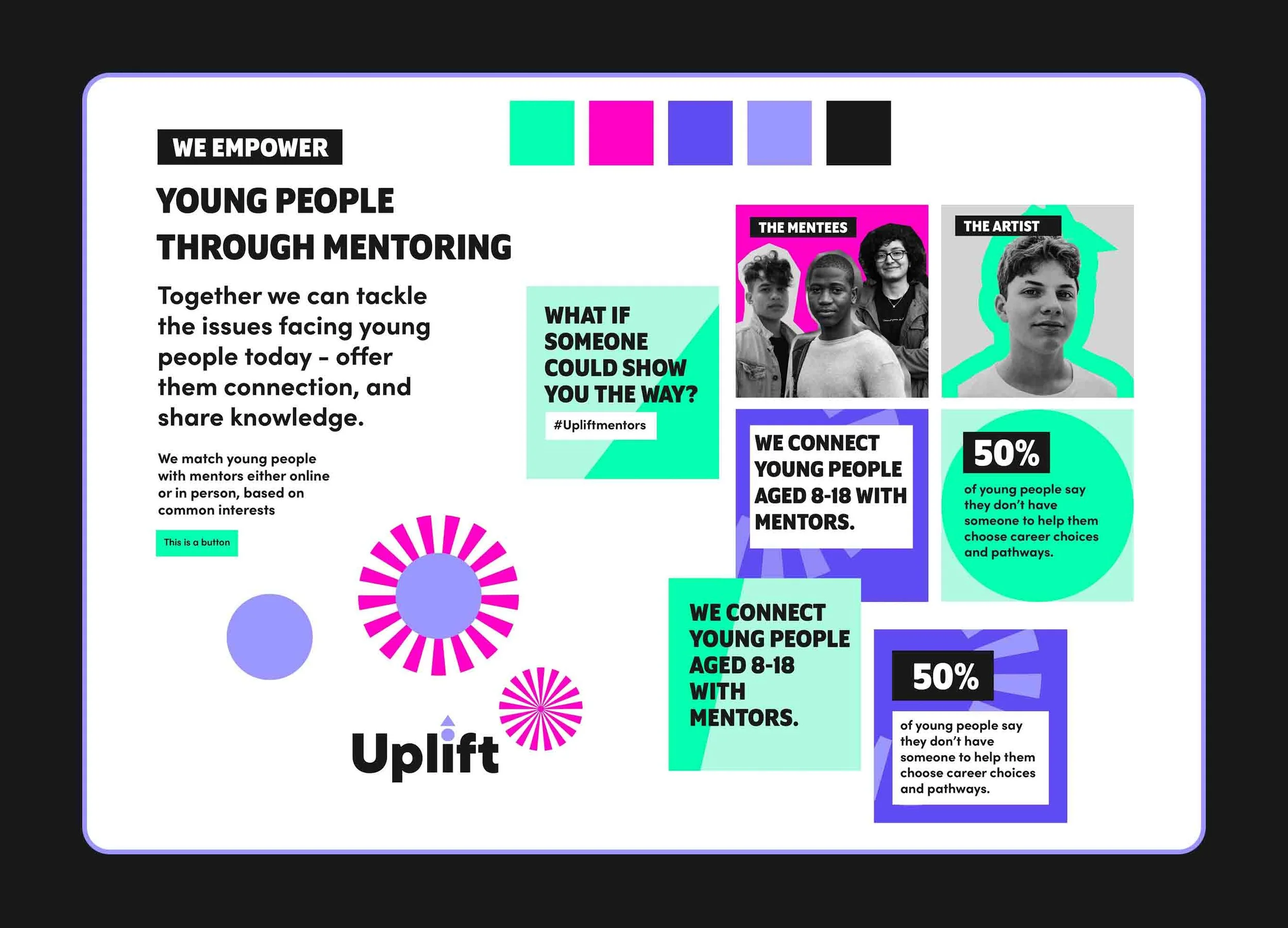 Branding, brand guidelines, logo and landing page for youth mentoring charity.